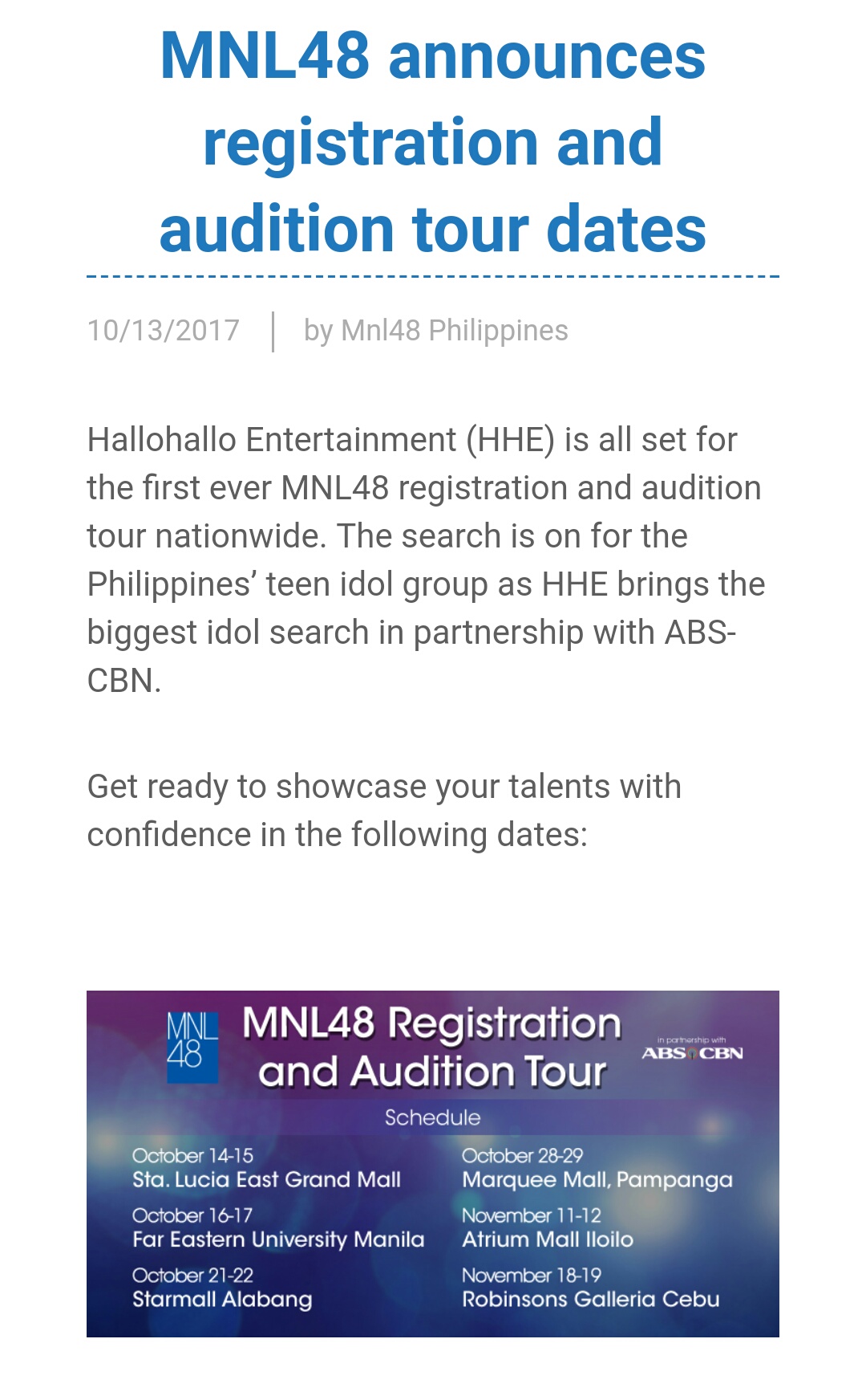 MNL48 adds Cebu, Iloilo to its Registration and Audition venues